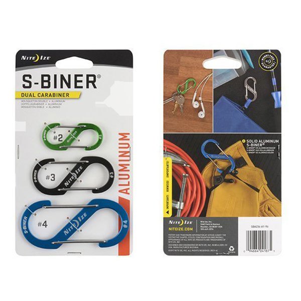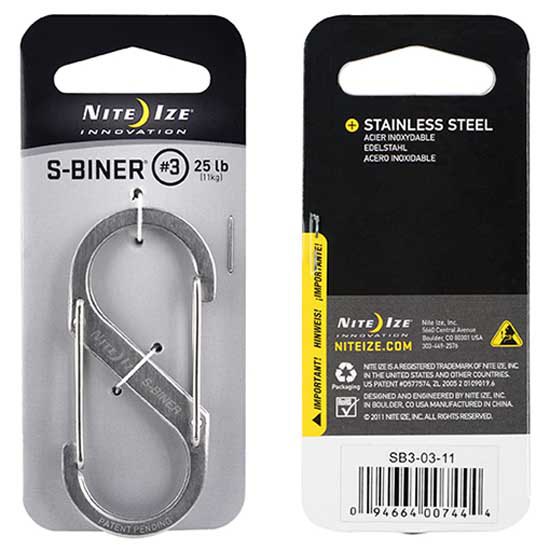 Toda la utilidad de una sola cerrada mosquetón … Veces Dos! Nuestro exclusivo, dos en uno S Biner ofrece funcionalidad para una casi interminable variedad de usos.Información del ProductoHecho de alta calidad, resistente a la intemperie de acero inoxidable, este práctico accesorio de ultra con sus puertas de doble resorte sostendrá, seguro y conectar todo, desde llaves de la casa y los teléfonos celulares a equipo de camping técnico. Coloque los objetos de valor a la barra central para la máxima seguridad, vincular puerta termina con un segundo conjunto de artÃculos y ancla, o conecte muchos artÃculos juntos. Más pequeño tamaño S Biners® son excelentes para la conexión de dos deslizadores de cremallera en las mochilas, bolsas de deporte, y maletas.Sabemos que uno duerma tamaño sirve para todos, por lo que hemos diseñado seis tamaños diferentes para que pueda elegir el tamaño adecuado para la tarea en cuestión. Hemos encontrado que los tamaños más pequeños funcionan muy bien para colgar artÃculos más pequeños de una correa del bolso o mochila, adjuntando a distintas teclas, o colgando de una planta de un gancho del techo. Los tamaños más grandes funcionan muy bien para los trabajos más grandes, como colgar una lata de pintura de una escalera o una herramienta a su cinturón de herramientas. Pero, la lista sigue y sigue. Pensamos Backpacker Revista dijo mejor cuando escribieron Dont pregúntese si usted necesita este pequeño widget de utilidad La pregunta es:.? Cuántosdetalles del productoConstrucción de acero inoxidable de alta calidadDisponible en 6 tamaños / 3 acabadosCierre de puerta de alambre de acero inoxidable SecurePersonalización Disponible grabar su logotipo o nombre de la empresa. Haga clic aquà para obtener más informaciónTamaño # 0.5 Dimensiones: 1.31 x 0.48 x 0.22 x 12.40mm 33.41mm | x 5.74mm Peso: 0,11 oz | 3,00 g clasificación de peso: 3 lb.Tamaño # 1 Dimensiones: 1.56 x 0.62 x 0.21 | 39.67mm x 15.86mm x 5.50mmWeight: 0,14 oz | 4,00 g clasificación de peso: £ 5Tamaño # 2 Dimensiones: 1.95 x 0.85 x 0.24 | 49.75mm x 21.71mm x 6.15mm Peso: 0,25 oz | 7,00 g clasificación de peso: £ 10Tamaño # 3 Dimensiones: 2.67 x 1.18 x 0.26 | 67.97mm x 30.09mm x 6.83mm Peso: 0,49 oz | 14.00g clasificación de peso: £ 25Tamaño # 4 Dimensiones: 3.52 x 1.57 x 0.31 | 89.41mm x 39.92mm x 7.94mm Peso: 1,06 oz | 30,00 g clasificación de peso: £ 75Tamaño # 5 Dimensiones: 4.38 x 1.93 x 0.33 | 111.41mm x 49.19mm x 8.45mm Peso: 1,69 oz | 48.00g clasificación de peso: £ 100Advertencia: No debe utilizarse cuando la retirada podrÃa causar lesiones corporales o daños materiales. No para la escalada.