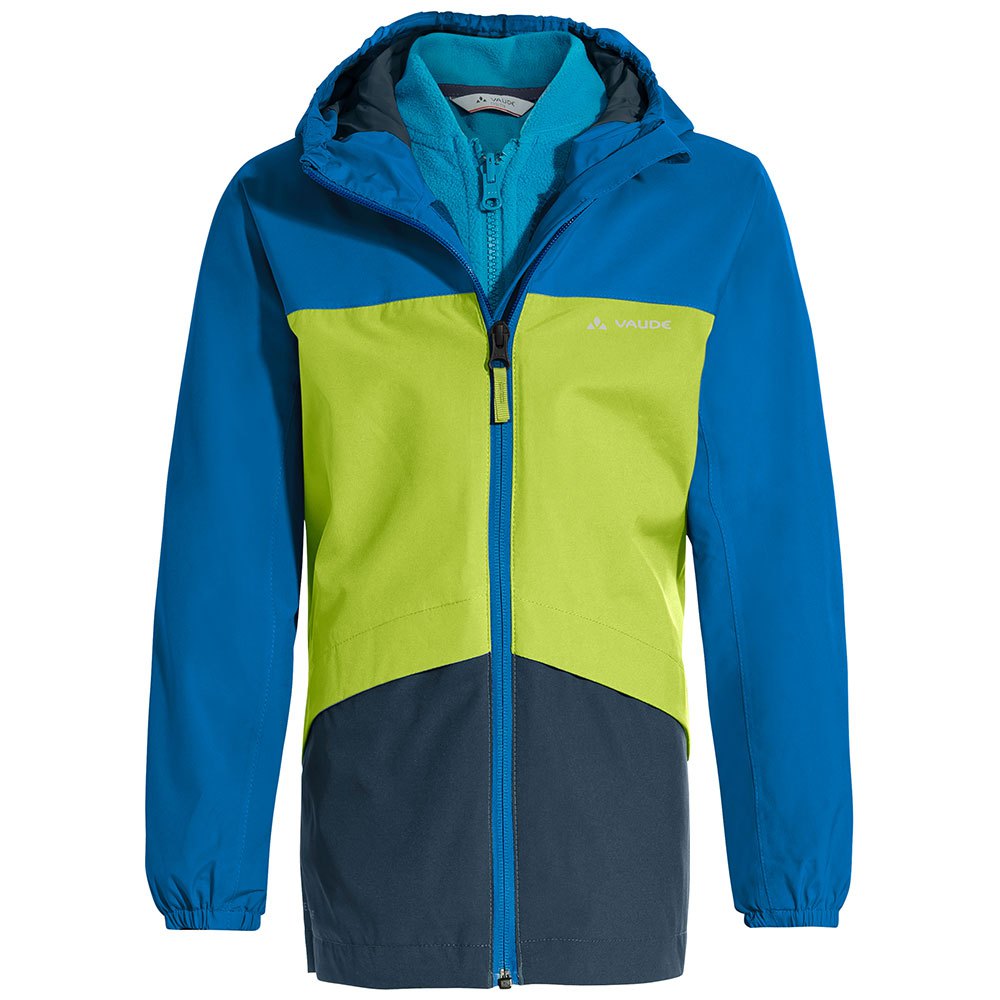 Chaqueta doble niña para uso diario, deportes de invierno y diversión al aire libre, impermeable, cortavientos y transpirable, muy versátil, ecológica.Fabricación amigable.¡Dos chaquetas para cuatro temporadas! Este top.Rendimiento, alto.Calidad, multi.La versátil chaqueta doble para niña es de primera línea en términos de función, moda y características, con elementos reflectantes y dobladillo ajustable.Los estándares de estilo se establecen con una A.Corte de línea, diseño entallado y fruncido en la espalda.La chaqueta de este niño es ecológica.Compañero amigable y certificado por bluesign® para todos.Condiciones climáticas: la capucha y el exterior impermeable protegen de la lluvia, la acogedora chaqueta interior de forro polar protege del frío.Usados juntos o por separado, esto es un todo.Clima, BFF por excelencia.La ropa para niños de alto rendimiento de VAUDE presenta materiales de la más alta calidad, niño.Diseños y colores amigables, y eco.Fabricación amigable.Desarrollamos ropa inteligente para actividades al aire libre para niños que está diseñada para durar para que pueda pasársela al siguiente niño.Este producto está elaborado con Eco Finish, un agua ecológica.Acabado repelente sin fluorocarbonos (PFC).Green Shape es su garantía VAUDE de productos ecológicos fabricados con materiales sostenibles, con recursos.Ahorro de fabricación y en instalaciones de producción justa.CARACTERÍSTICAS:Chaqueta externa:.Tejido de 2 capas.2 bolsillos frontales cubiertos con cremallera.Cremallera frontal con doble solapa y pliegue.Sobre.Puños elásticos.Cordón de ajuste seguro, completamente cubierto en el dobladillo inferior, ajustable a través de bolsillos.Capucha ajustable adjunta con inserciones elásticas.Forro dividido: parte superior forrada con malla, parte inferior, mangas y capucha forradas en tafetán.Elementos de impresión reflectantes.Tubería reflectante.Etiquetas de nombre hasta el tamaño 122/128 Chaqueta interior :.Puños de licra.Etiquetas de nombre hasta el tamaño 122/128.Chaqueta exterior: Tejido principal.Rostro: 100% Poliéster.Membrana: 100% poliuretano.Forro: 100% Poliamida.Forro de malla: 100% Poliéster (del mismo 56% reciclado) Chaqueta interior: Tejido principal: 100% Poliéster.